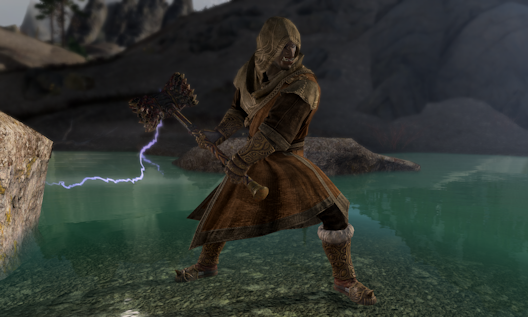 The demonologist is the mightiest or sorcerers, wielding the power of Oblivion and Nirn and capable of conjuring great pillars of flames or storms of electricity. So great is their occult knowledge they can bargain servants from Oblivion into doing their bidding.